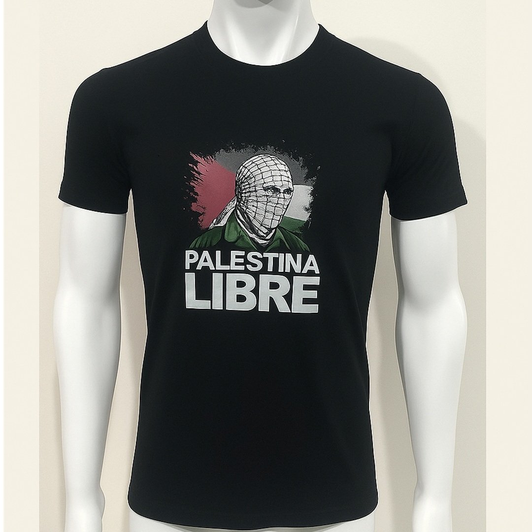 Confeccionada en algodón suave y resistente, esta prenda no solo es cómoda, sino también una poderosa declaración visual. Ideal para quienes creen en la justicia, la dignidad de los pueblos y la libertad.